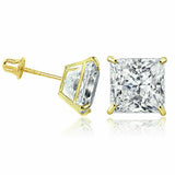 Unisex Classic 14K Solid Yellow/White Gold Sqaure Princess CZ Bolita Bolita Screw Back Stud Earrings