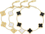 3Pcs Lucky Clover Bracelet Jewelry Set for Women Girls 18K Gold Plated Titanium Steel Simple Cute Bracelet link Gifts (Black+White+Gold)