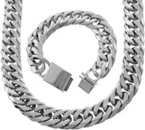 Bling Bling NY Mens Solid Stainless Steel 21mm Miami Cuban Link Choker Chain and Bracelet Set Heavy 24 inches