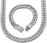 Bling Bling NY Solid Stainless Steel 18mm Miami Cuban Link Chain and Bracelet Set