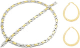 Bling Bling NY Womens 2 Tone Diamond Cut Hugs & Kisses Necklace Bracelet XOXO Set with Oval Hoop Earring 18/20 inches