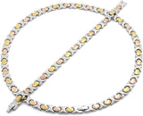 This classic 3 tone choker style hugs and kisses (XOXO) stampato set is made of high quality stainless steel. Wear this versatile set with any outfit for any occasion. High quality stainless steel has high resistance to rust, corrosion and tarnishing, which requires minimal maintenance. Stainless steel is one of the most bio-compatible metals, so stainless steel jewelry is amazingly hypoallergenic because of its anti-allergic properties. As one of the strongest of all jewelry metals, it does not oxidize and will be very durable. All makes it a top fashion accessory to complement your wardrobe with the sleek, contemporary styling offered by our stainless steel jewelry. Great quality at an amazing price. The set makes for a great gift.