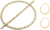 Bling Bling NY Womens 3 Tone Diamond Cut Hugs & Kisses Necklace Bracelet XOXO Set with Oval Hoop Earring 18/20 inches