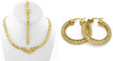 Bling Bling NY Womens Gold Tone Hugs & Kisses I Love You Necklace Bracelet Medium Sized Round Fillgree CZ Hoop Earring Set Stampato Stainless Steel Anti-Tarnish