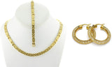 Bling Bling NY Womens Gold Tone Hugs & Kisses Necklace Bracelet Medium Sized Round Fillgree CZ Hoop Earring Set Stampato Stainless Steel Anti-Tarnish