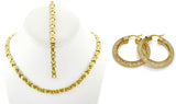 Bling Bling NY Womens Gold Tone Hugs & Kisses Necklace Bracelet Medium Sized Round Fillgree CZ Hoop Earring Set Stampato Stainless Steel Anti-Tarnish