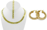 Bling Bling NY Womens Gold Tone Starburst Hugs & Kisses Necklace Bracelet Medium Sized Round Fillgree CZ Hoop Earring Set Stampato Stainless Steel Anti-Tarnish
