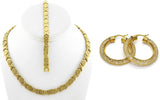 Bling Bling NY Womens Gold Tone Starburst Hugs & Kisses Necklace Bracelet Medium Sized Round Fillgree CZ Hoop Earring Set Stampato Stainless Steel Anti-Tarnish