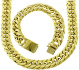 Solid 14k Yellow Gold Finish Stainless Steel 21mm Thick Miami Cuban Link Chain Necklace And Bracelet Set