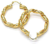 SPARKLE XOXO Women's Large Real Gold Plated Round Hoop Earrings Diamond cut Twist Style 60mm