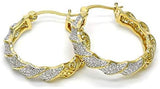 - Women's Small Two Tone with CZ Micro Pave Round Hoop Earrings 14K Gold Layered 30mm