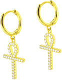 - Unisex Real Solid 925 Sterling Silver Cubic Zirconia Eqyptian Cross Dangle Hinged Hoop Earrings CZ African Ankh Cross Drop Hanging Huggie Earrings (Silver Tone, Gold Tone)