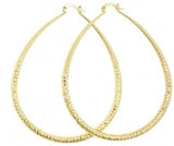 Women's Extra Large 14K Gold Filled Oval Hoop Earrings Diamond Cut Finish Tear Drop Shape Hollow 4mm (85X70mm)