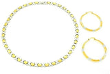 Womens Hugs and Kisses Necklace Bracelet Earrings Set XOXO 20" 2 Tone Gold and Silver with Round Medium Hoops
