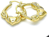 - Women's Real 14K Gold Filled Light Weight Hollow Hugs & Kisses Design Heart Round Hoop XOXO Earrings 30mm