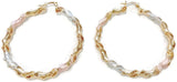 Yellow Rose and White Gold-Tone Ladies Circle Hollow Design and Diamond-Cut Design Large Hoop Earrings Tri-Color 55mm rope twist style
