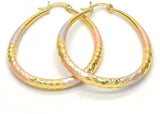 Yellow Rose and White Gold-Tone Ladies Oval Hollow Design and Diamond-Cut Design Small Medium Hoop Earrings Tri-Color 37mm/57mm